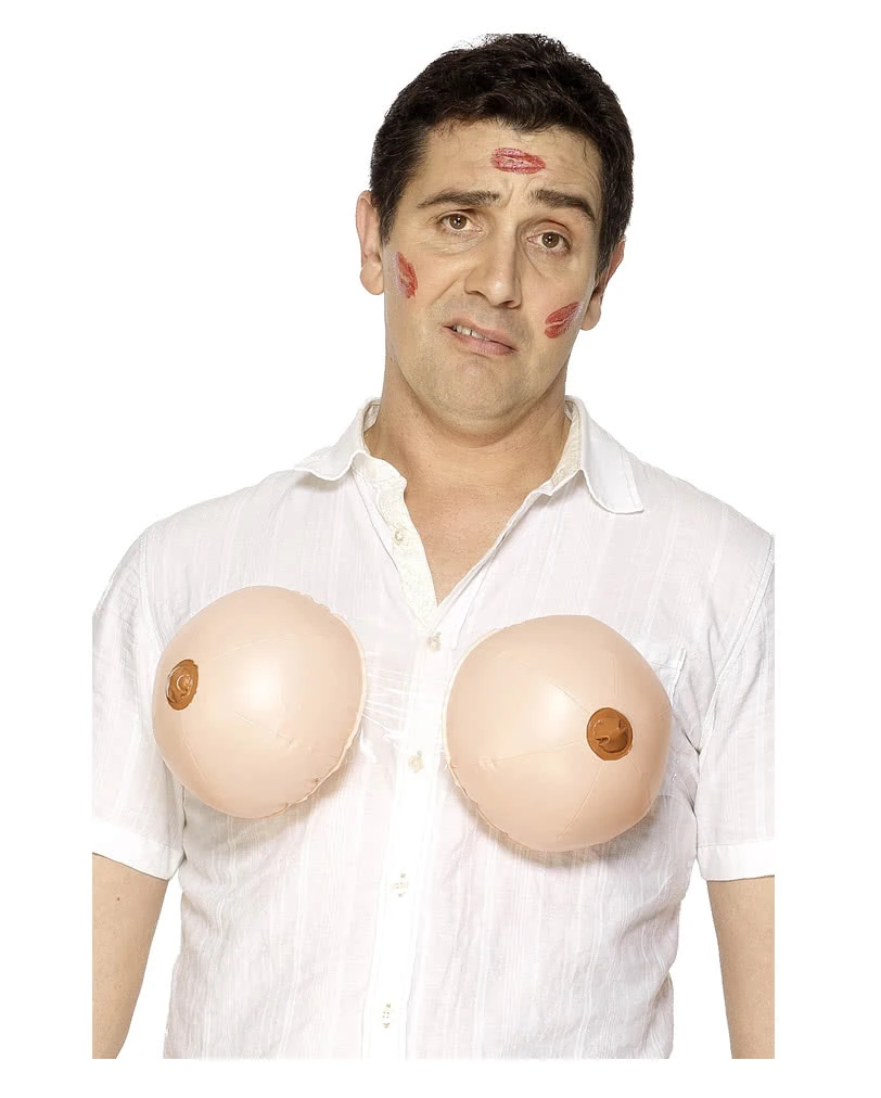 Ein Paar dralle Dinger, die das Dekollté im Kostüm ausfüllen oder zum Herumspielen, damit man(n) auch weiß, wie es sich so lebt mit großen Brüstem. Die Aufblasbaren Brüste zum Umlegen sind ein witziger Spaß an – unter und auf Halloween und Faschingskostümen.
