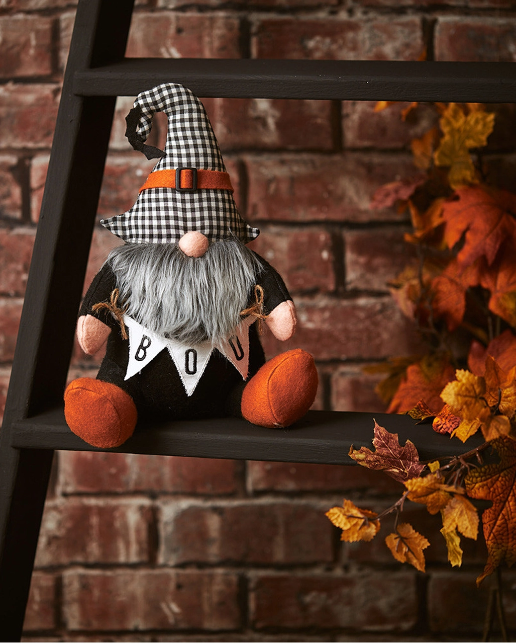 Unser Boo Halloween Wichtel Türstopper hält die Tür dann auf, wenn du es willst. Stelle die kleine Halloween Wichtel Figur an die Tür, um sie am Zufallen zu hindern. Die süße Zwergenfigur ist aus weichem Material gefertigt und beschwert. Sie trägt eine Spitzmütze, die bis über die Augen gezogen ist. Nur die kleine dicke Nase schaut unter dem grauen Rauschebart hervor. In seinen Händen hält der Wichtel Türstopper eine Wimpelgirlande mit der Aufschrift „Boo“.