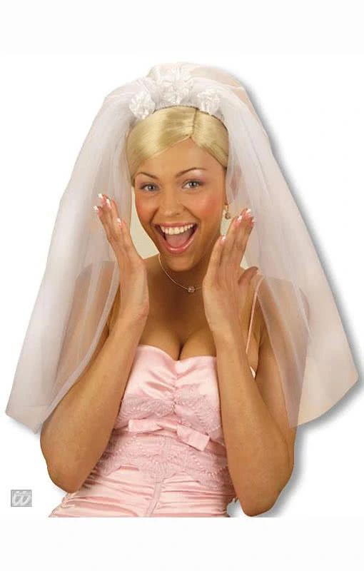Jetzt gibt es Brautalarm vom Feinsten. Der extravagante Brautschleier mit weißen Rosen ist ein cooler Haarreif für die Bachelorette Party. Der weiße Brautschleier ist ganz einfach zum Aufstecken ins Haar. Der Brautschleier einer unschuldigen Braut eignet sich hervorragend für den Junggesellenabschied, als Zubehör für ein Karnevalskostüm oder blutversudelt für eine derbe Halloween Zombiebraut.