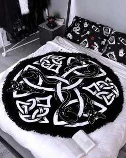 Ein gefährlich aussehender, grimmiger Drache, mit seinen stechenden roten Augen, ist spiralförmig um ein Kreuz mit goldenen Details angeordnet. Sein scharfer, geschuppter Schwanz ist um den Stamm des Kreuzes gewickelt, während große, spitze Flügel den Rücken schützen.