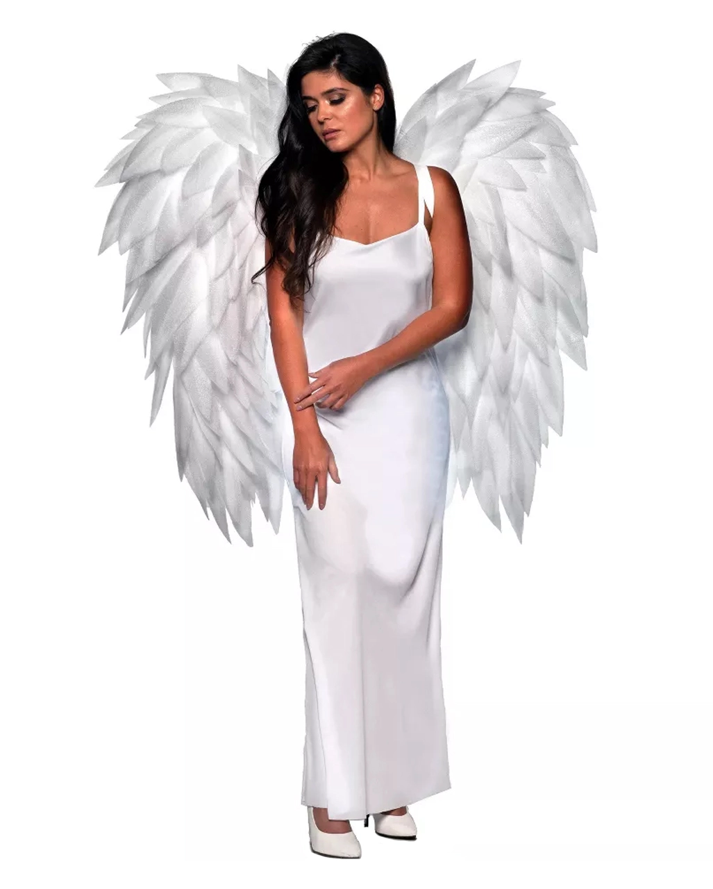 Große weiße Fantasy-Flügel als außergewöhnliches Kostümaccessoire
