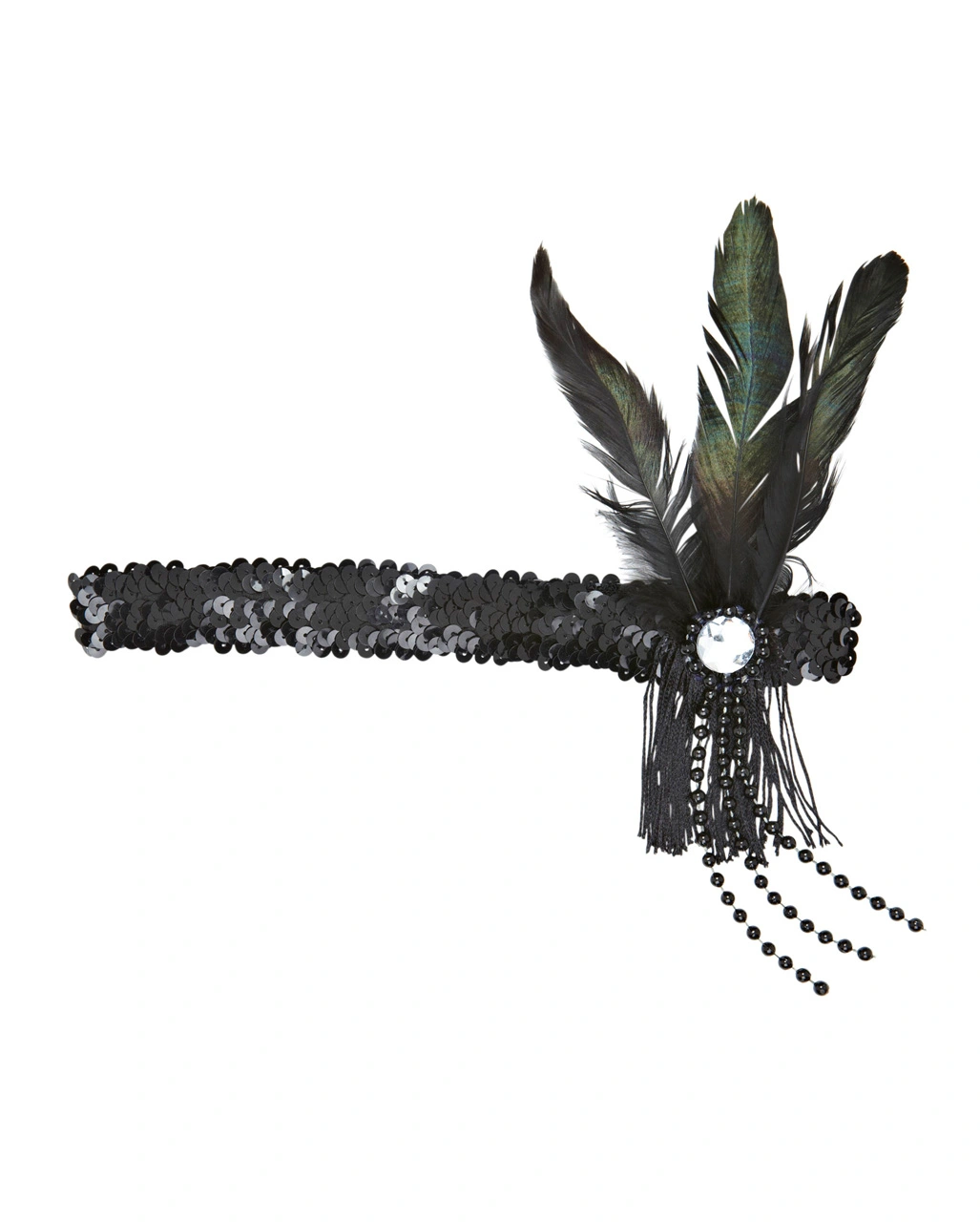Flapper Stirnband Schwarz mit schwarzer Feder