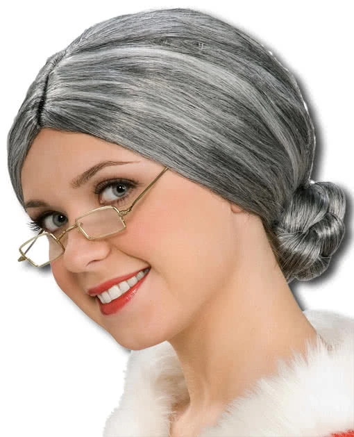 Die klassische Faschingsperücke einer alten Frau hat am Hinterkopf den typischen Dutt, ist in der Mitte gescheitelt und in verschiedenen Grautönen gehalten. Eine Oma Perücke mit Knoten erspart so manches teures Kostüm und lässt die alte Kittelschürze oder den Second Hand Laden als Fundgrube zu einer günstigen Alternative für Kostüme werden.