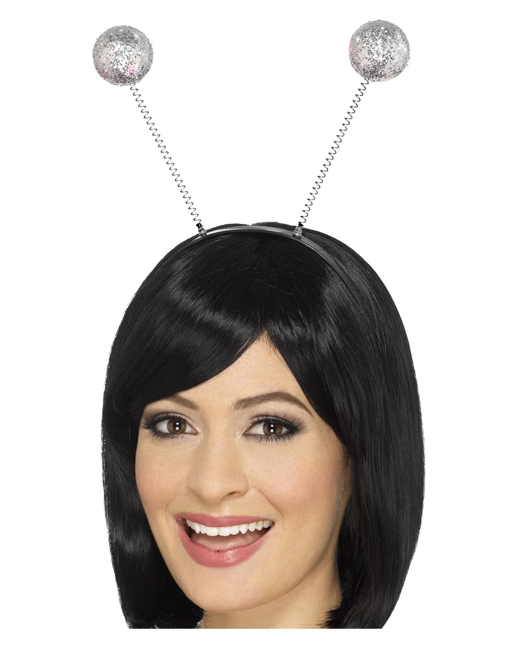 Nutze unseren Haarreif mit silbernen Bommeln als geniale Ergänzung zu deinem Kostüm! Der Kopfschmuck vervollständigt Alien Verkleidungen, Disco Outfits, Marienkäfer Kostüme und passt auch perfekt als schnelles Accessoire für Weihnachts- und Silvesterpartys!