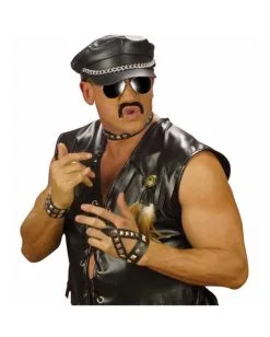 Das schwarze Hard Rocker Set 3teilig besteht Armband, Halsband und Fingerhandschuh, die allesamt mit zahlreichen Nieten bestückt sind. Auch für Fetisch-Fans ist unsere Nieten-Collection die richtige Wahl. Dazu passt natürlich hervorragend die Biker Mütze aus Kunstleder oder die Heavy Metal Perücke schwarz.