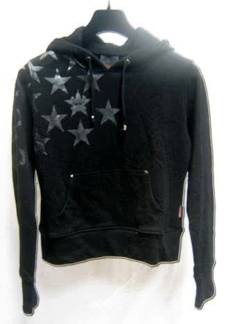 Der angesagte Gothicsweater mit Sternenprint spricht natürlich auch alle Punks, Alternativ Frauen, sowie Emos und alle Modebewussten an. Der superstylische Sternenhoody ist Ideal für kühle Sommernächte zum darüber ziehen, aber auch im Winter zum darunter ziehen. Der Kaputzensweater besticht durch seinen Sternendruck und seinen mit silbernen Totenköpfen versehenen Kordeln. Der Sternenprint verläuft über die rechte Brustseite bis unter die Schulter. Ebenso ist ein kleiner Skull mit Knochen im Sternendesign aufgedruckt.