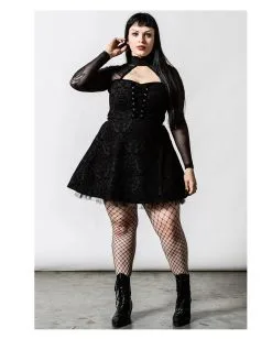 Komplettiere mit dem KILLSTAR Anabelle Party Kleid deine dunkle Garderobe. Das Statement Kleid besitzt Netzärmel aus feinem Mesh und einen hohen Ausschnitt, der untere Teil des Kleides ist doppellagig. Auf der Rückseite befindet sich ein 25 cm langer Reißverschluss, der das Anziehen erleichtert. Kombiniere das Killstar Partydress mit einem Paar High Heels, um den Look zu vervollständigen und vergiss nicht, die KILLSTAR Lysithea Spitzenstrümpfe für den perfekten Auftritt.