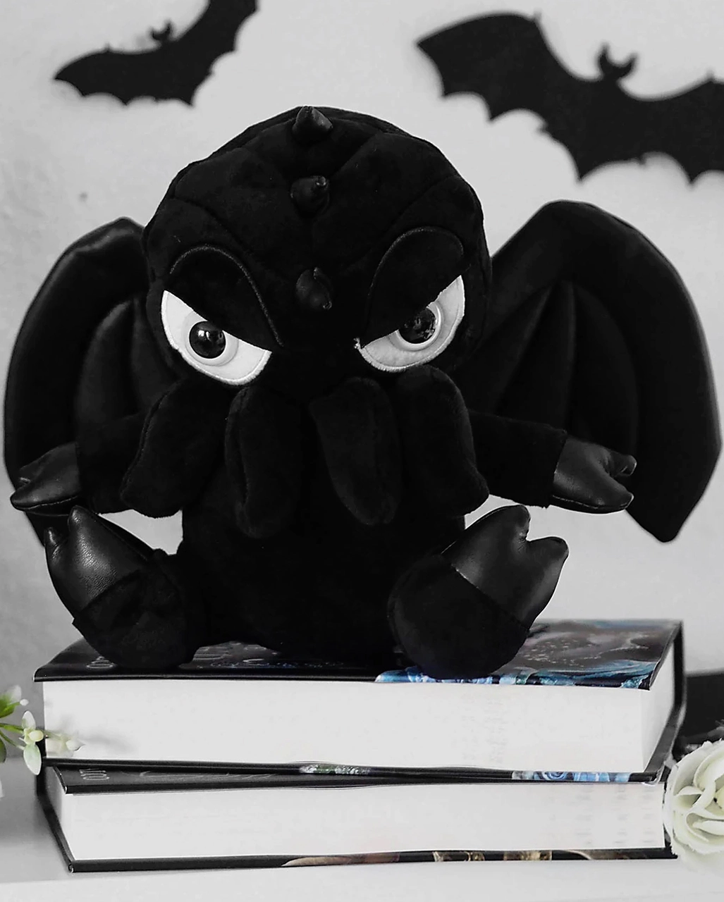 Mit fremden Äonen kann sogar der Tod sterben. Der Cthulhu, das mystische Wesen, erschaffen vom Großmeister düsterer Visionen H.P. Lovecraft, bringt die Phantasie in Wallung. Unser KILLSTAR Baby Cthulhu Kuscheltier huldigt der Legende. Genieße die Gegenwart der Cthulhu Plüsch Puppe und lasse dich von ihr inspirieren. Oder kuschel einfach mit der Gothic Plüschfigur und hab sie so lieb wie einen besten Freund.Wir sind sicher, dann wird dir der Cthulhu auch wohlhgesonnen sein.