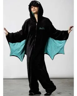 Flauschig weicher Gothic Jumpsuit in schwarz mit Flügel
