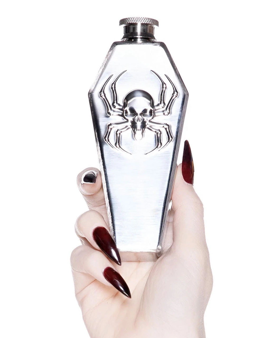Stylisher Gothic Flachmann in Sargform und mit Spinnen-Motiv