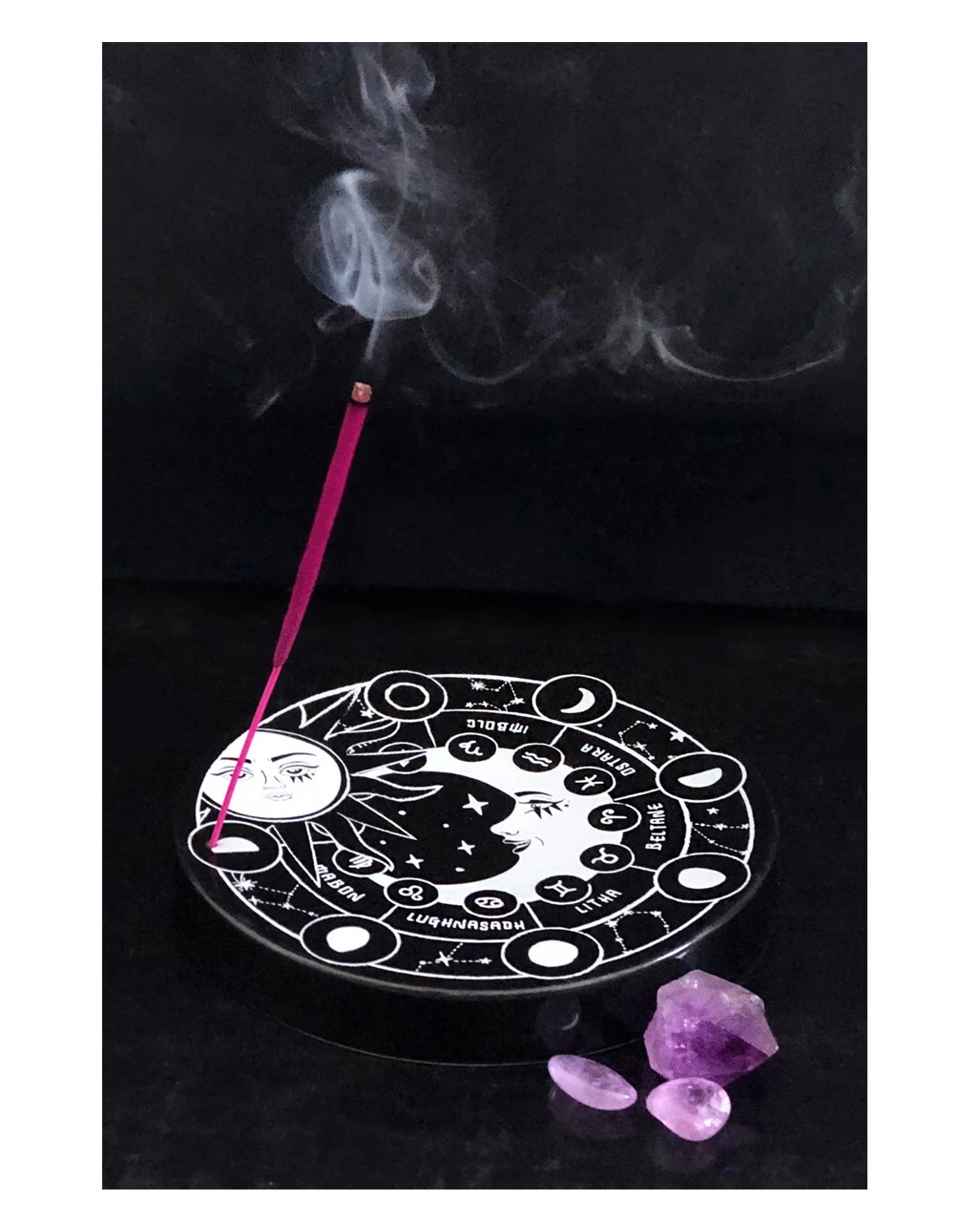 Unser KILLSTAR Okkulter Räucherstäbchenhalter verleiht deinem gemütlichen Gothic-Nest ein spirituelles Flair. Ganz gleich, ob du die Räucherstäbchen zur Meditation oder für ein angenehmes Raumklima nutzt: Exquisit ist dieses Wohnaccessoire allemal. Der Weihrauchstäbchenhalter in Schwarzweiß präsentiert sich mit kosmischen Symbolen und macht sich auch ideal als Geschenkidee für Gothics.