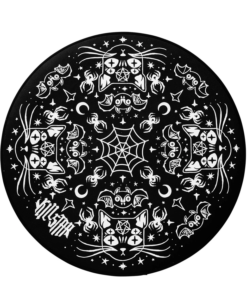 Unser KILLSTAR Spoopy Teppich rund fügt sich auf besonders schaurige Weise in die Einrichtung deiner Gruft ein. Du liebst es eben düster und spooky. Spinnen und Fledermäuse sind für dich so zauberhaft, wie für andere Hamster und Kaninchen. Lebe deinen dunklen Traum und richte dich mit unserem Teppich mit Spooky Motiven ein. Oder verschenke es an einen anderen dunklen Gefährten. Das Gothic Wohnaccessoire liegt dir mit seinem düster verspielten Flair zu Füßen, wo immer du es hinlegst.