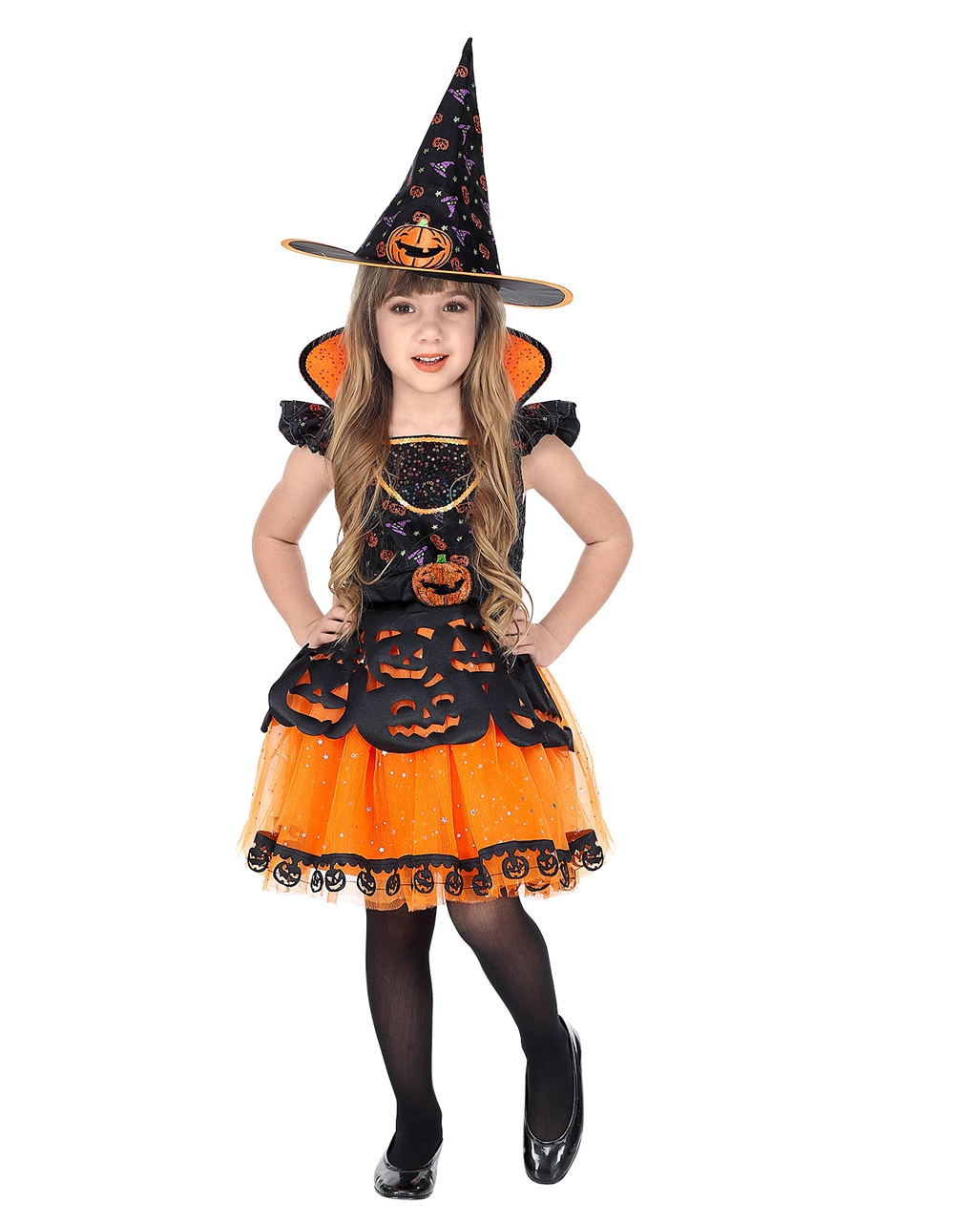 - Wunderschönes Hexenköstüm mit Kürbis Silhouetten