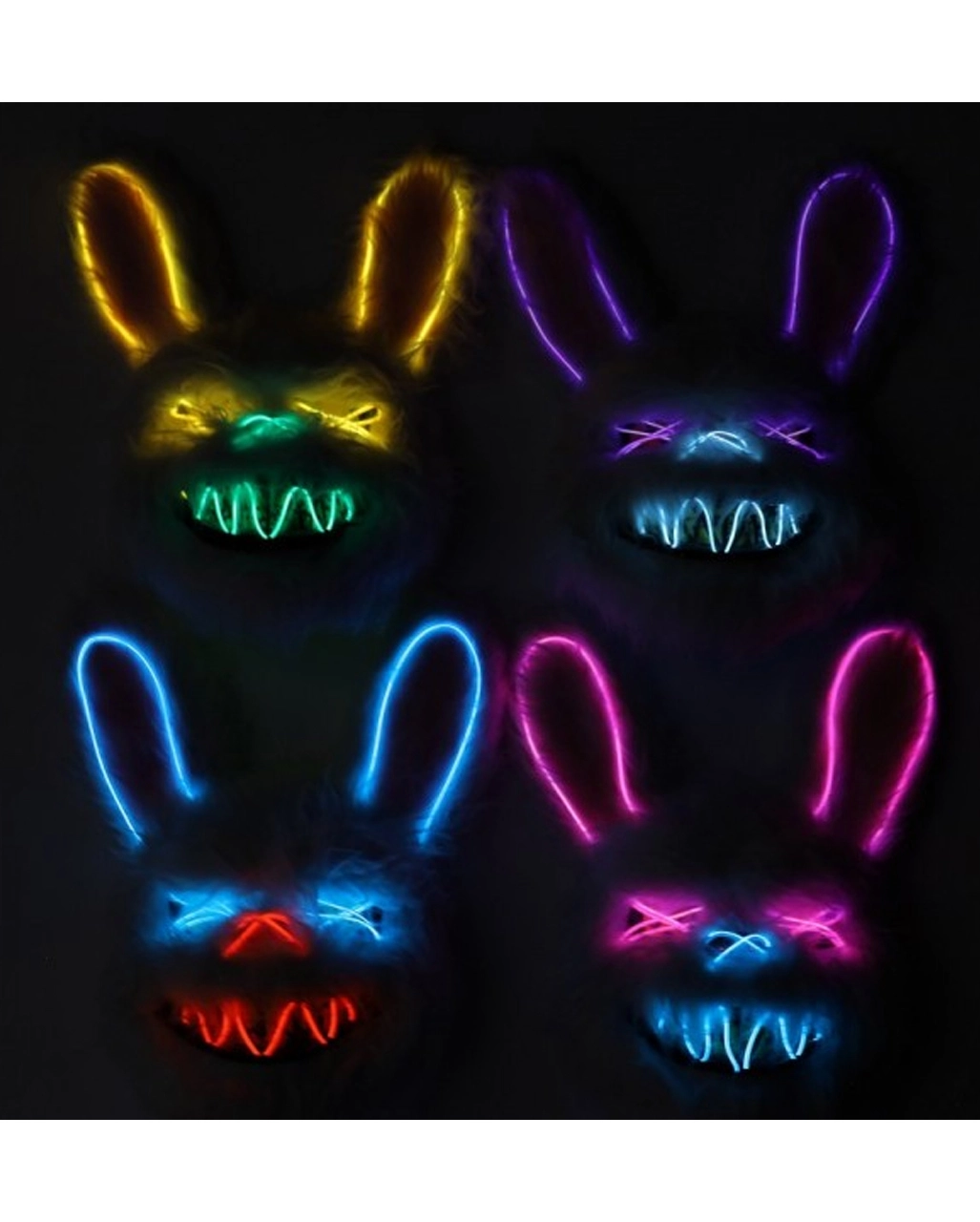 Die LED String Bunny Maske verwandelt dich in ein leuchtendes Kaninchen. Die Gesichtszüge des Hasen sind mit bunt leuchtenden LED-Strings unterlegt, was für einen ziemlich coolen Effekt sorgt. Im Dunkeln kommt die beleuchtete Maske am besten zur Geltung – ideal also, um an Halloween für Aufsehen zu sorgen.