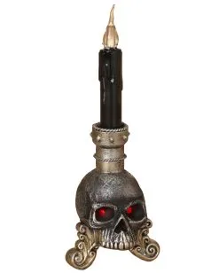 Wenn du deine Gruft in der Halloween Nacht stilecht beleuchten willst, dann brauchst du einen Totenschädel. Unser leuchtender Totenkopf mit Kerze ist dafür geradezu perfekt. Der silbrig schimmernde Schädel verläuft in grazilen Schnörkeln und aus der Schädeldecke entspringt eine Halterung mit einer schwarzen Kerze. Wie schaurig und dekorativ zugleich. Damit schaffst du ein schauriges Ambiente, wie es in alten Spukschlössern vorherrscht.