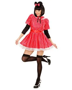 Das Mäusedame Kostüm besteht aus dem Pin Up Kleid mit schwarzen Ärmeln sowie dem Haarreif mit Mäuseohren und einem roten Stoffgürtel. Um die Minnie Maus Verkleidung zu perfektionieren, brauchst du jetzt nur noch Weiße Spitzenhandschuhe sowie unsere heißen Basic Body Schwarz. Mit dem Mäusedame Kostüm stiehlst du den anderen Damenkostümen locker die Show, denn diese ultimative Mäuseverkleidung ist süß und zugleich sexy.