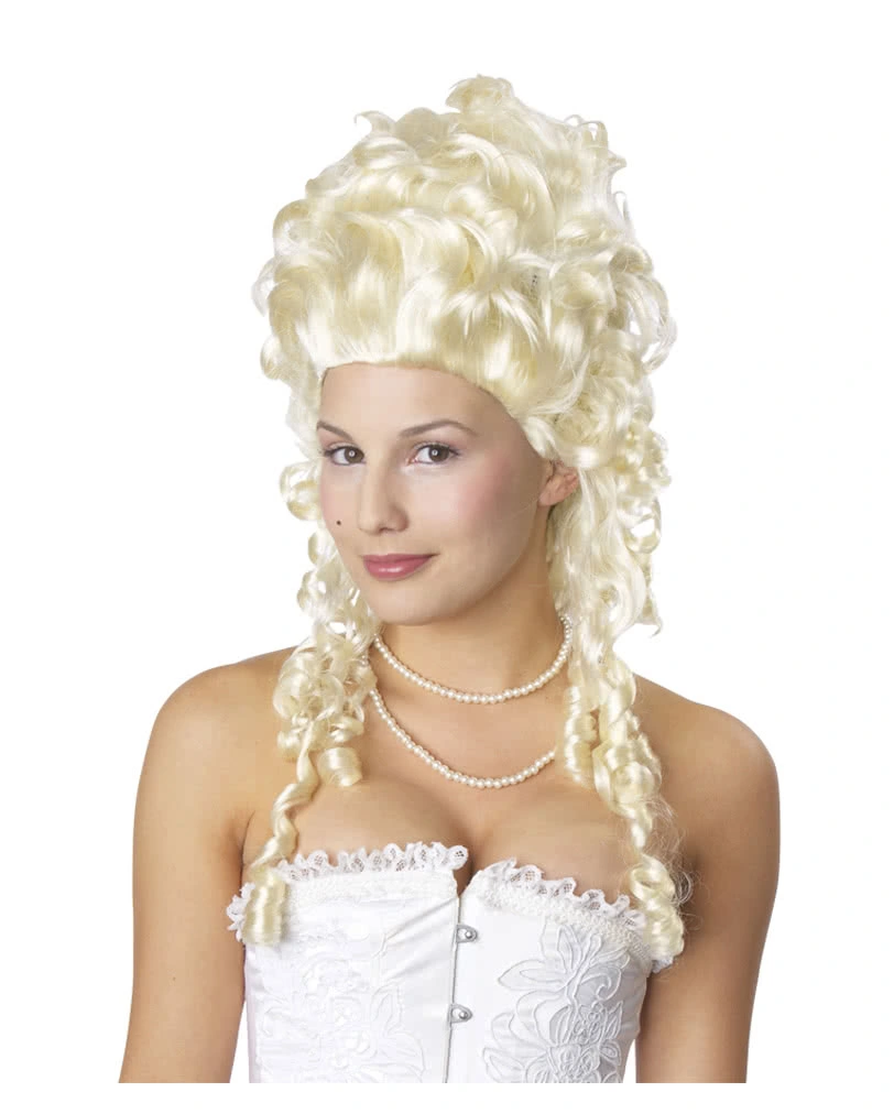 Der turmhohe Aufbau der Marie Antoinette Perücke mit Stöpsellocken, wird auch heute noch zu allerhand Gelegenheiten wir Kostümbällen, Historic Events, Halloweenpartys, Fasching und Liverollenspiel getragen. Die weißblonde Marie Antoinette Perücke ist sehr gut gearbeitet, graziös frisiert und ist aus Kunsthaar. Die Perücke ist für Erwachsene, fällt aber eher klein aus.