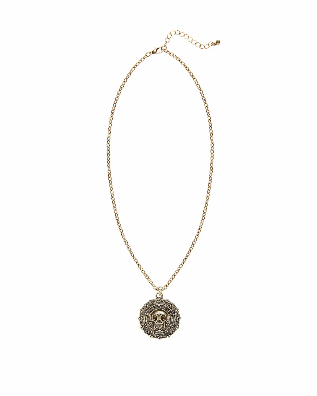 Das bronzefarbene Piraten Amulett mit Halskette ist ein wahrer Piratenschatz. Die Münze des Aztekengolds kannst du prima zu deinem Piratenkostüm um den Hals tragen und somit nicht nur deine Crew verfluchen, sondern gleichzeitig zum piratiösen Blickfang jeder Karibik Mottoparty werden.