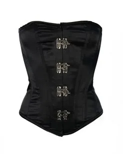 Mit unserem Satin Vollbrust Korsett mit Haken schwarz hast du ein praktisches Gothic Fashion-Accessoire gefunden. Die schwarze Satin Corsage ist hochwertig verarbeitet und zaubert eine wunderschöne Silhouette. In Kombination mit sexy Gothic Röcken oder Jeans sieht dieses Vollbrust Korsett sehr verführerisch aus und wird auf dem kommenden WGT für Aufsehen sorgen. Eine sexy Schnürung am Rücken sowie ein Hakenverschluss an der Vorderseite setzen zusätzliche Akzente!