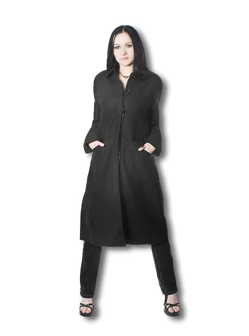 Der einfache Damenmantel ist ein perfekter Übergansmantel für die Frühlings- und Herbstzeit. Der klassische Schnitt lässt sich hervorragend zu Hosen und Kleidern kombinieren. Zudem eignet sich der Kurzmantel für das alljährliche WGT Festival.