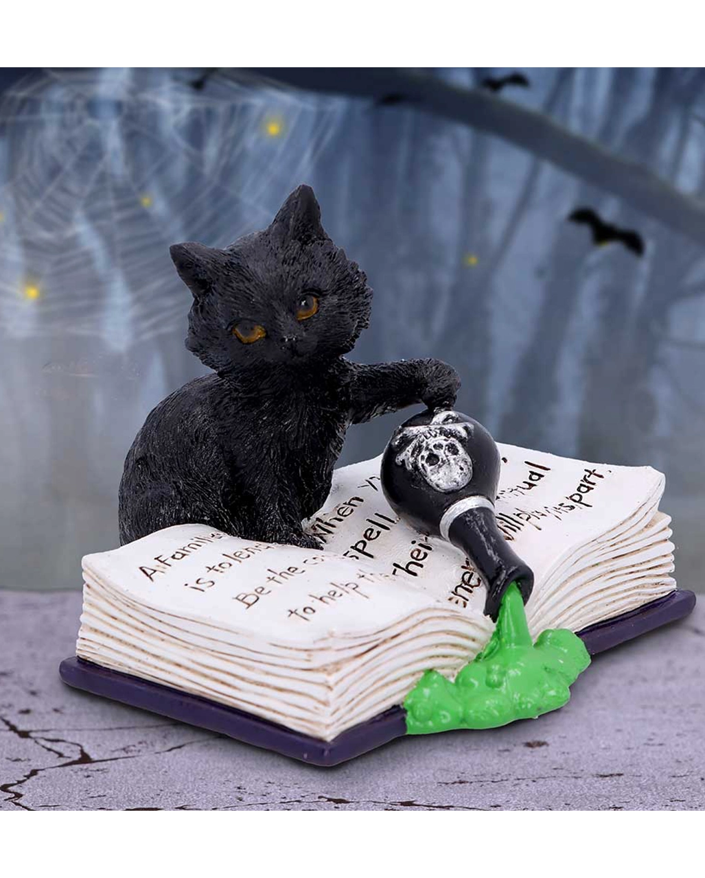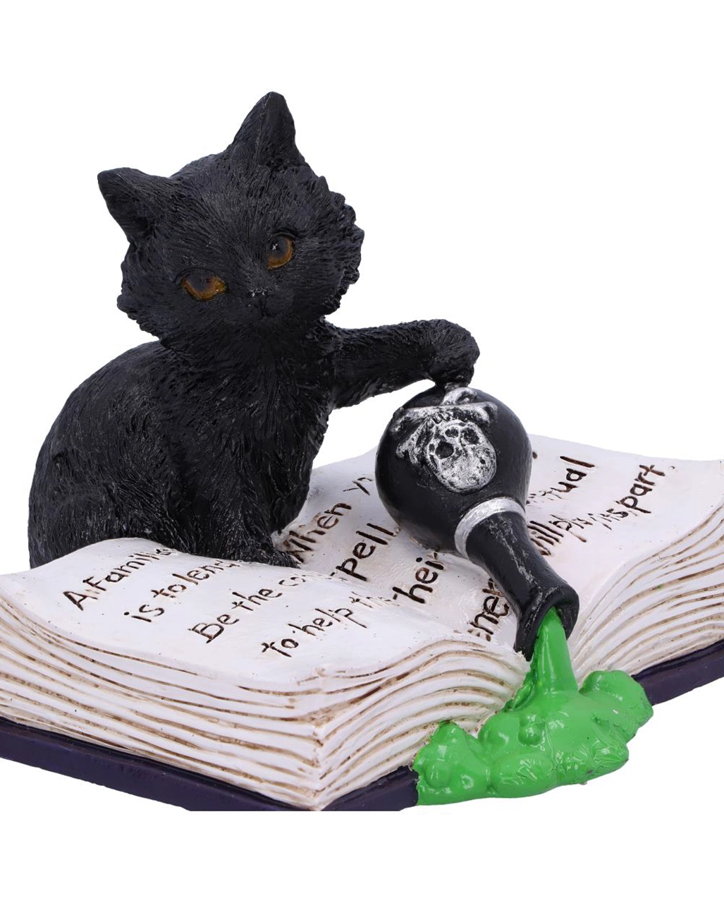 Niedliche Katzenfigur mit Zauberbuch & Gift-Flakon der ausläuft