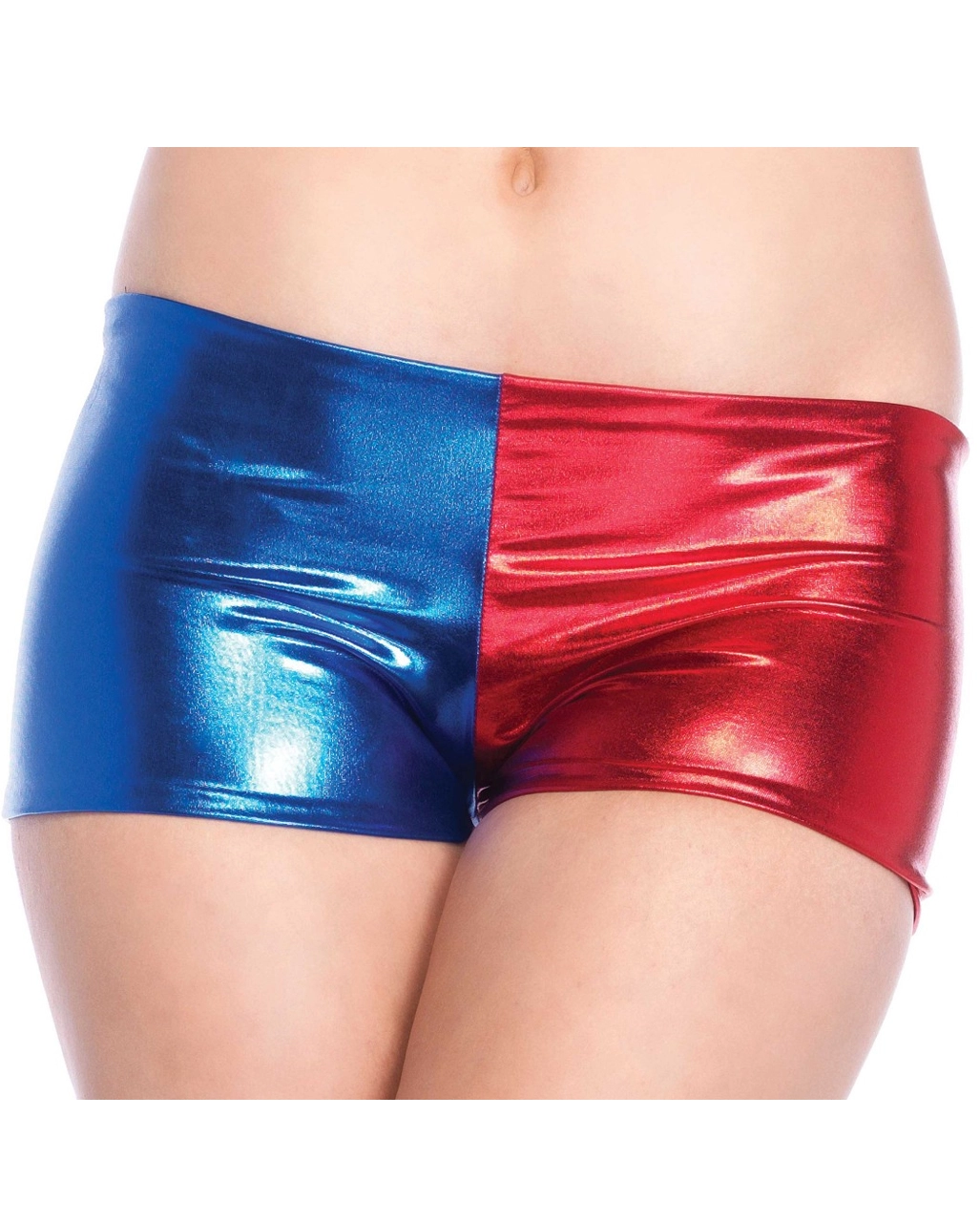 Unsere Harley Cosplay Perücke ist dafür perfekt. Die sexy Harlekin Shorts ist in den Größen S-L erhältlich und aus weichem, leicht dehnbarem Material. Die Stoffoberfläche ist leicht glänzend, was ihr einen edlen Look verleiht. Die eine Hälfte der Kostümshorts ist blau, die andere rot. Du kannst sie also perfekt zu deinem rot-blauen Harlekin Kostüm kombinieren, und als sexy Clown Lady in Erscheinung treten.