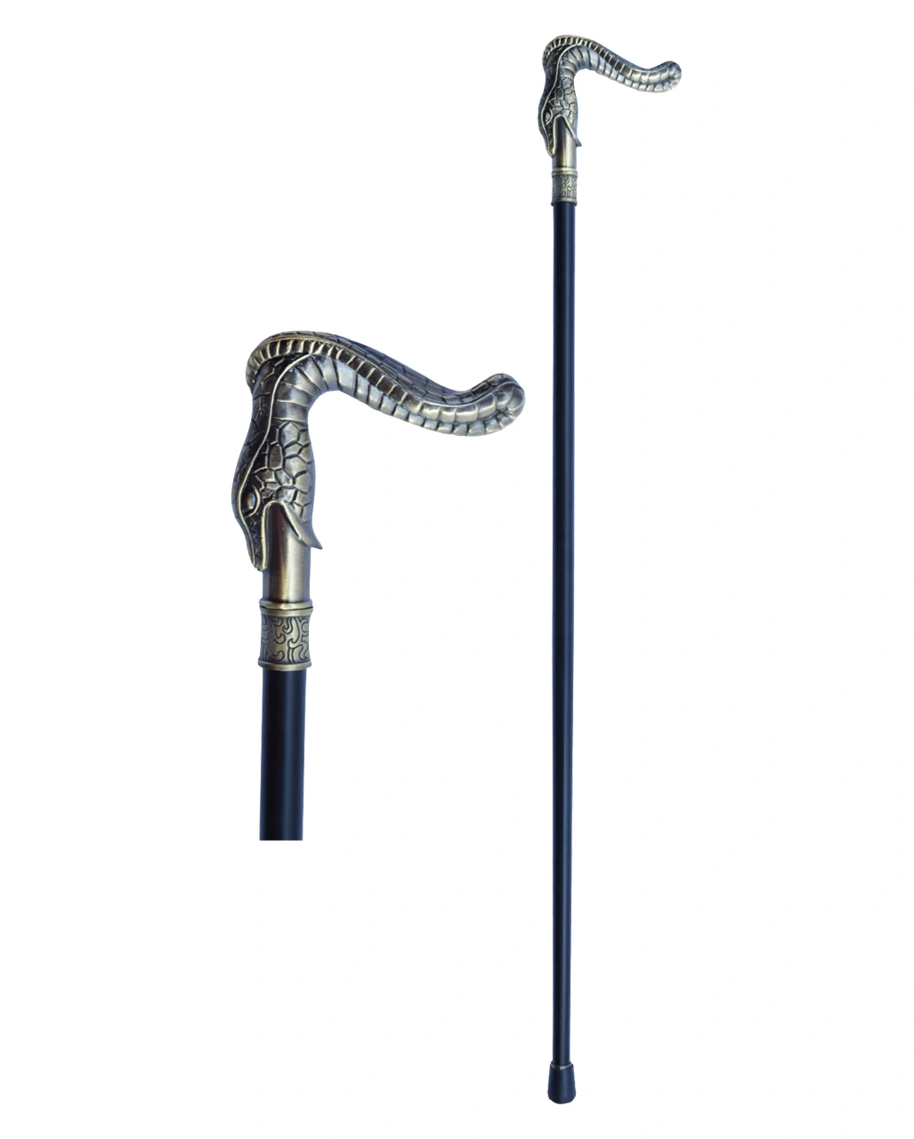 Der Spazierstock mit Schlange als Griff ist ein beeindruckendes Halloween Accessoire. Dieser Gehstock wird wohl einem ganz besonderen Gentleman als Begleiter dienen. Vielleicht bist du ein Vampir oder du stehst mit dunklen Mächten im Bunde. Vielleicht schleichst du aber auch als neuer Jack the Ripper zur Halloween Party und sorgst für Gänsehaut bei den Damen. Der Gehstock im Gothic Style wird dabei zum Eyecatcher mit Gruseleffekt.